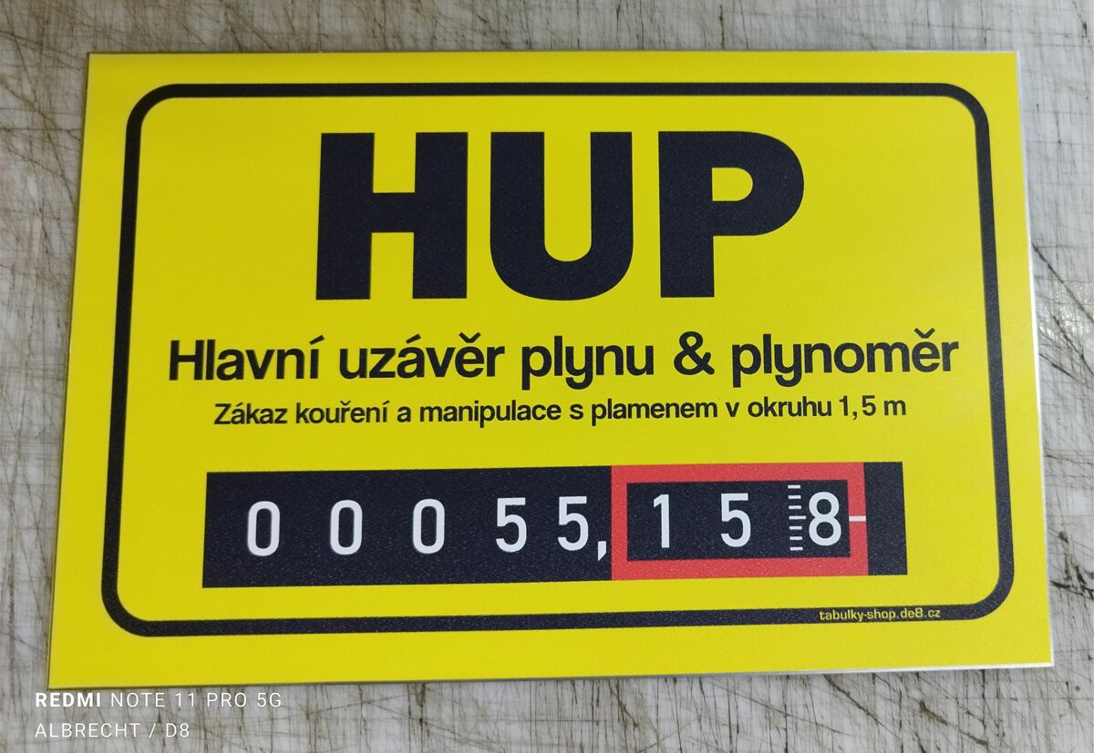 Tabulka / cedulka - Hlavní uzávěr plynu / plynoměr