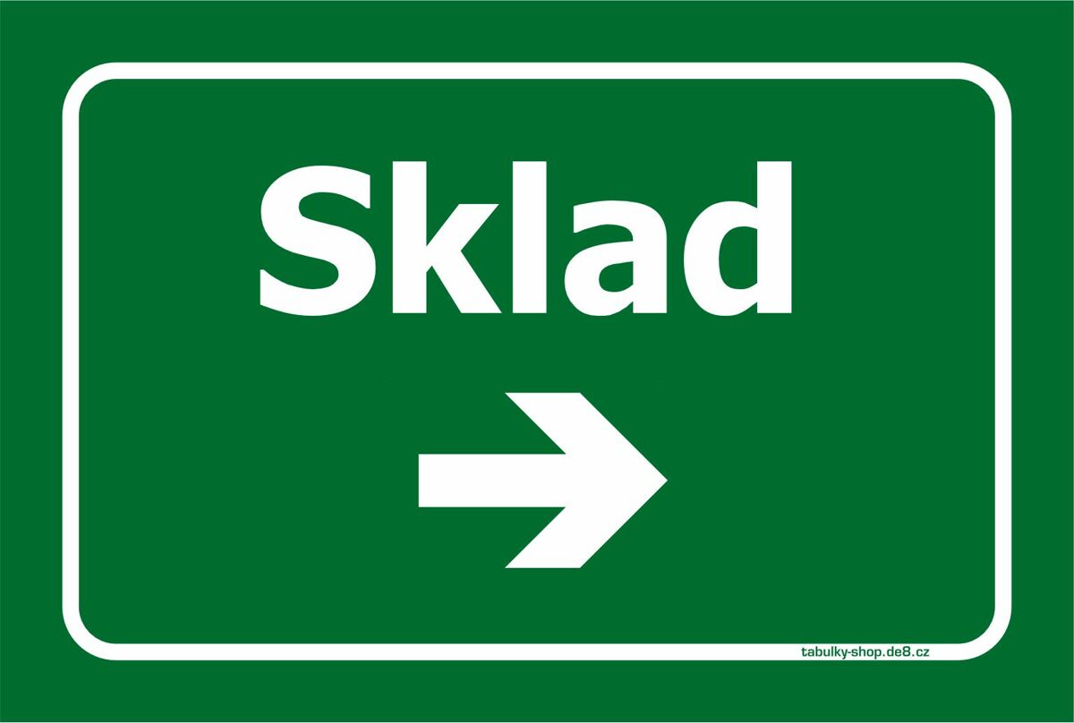 Tabulka / cedulka - Sklad s kratší šipkou doprava - zelená