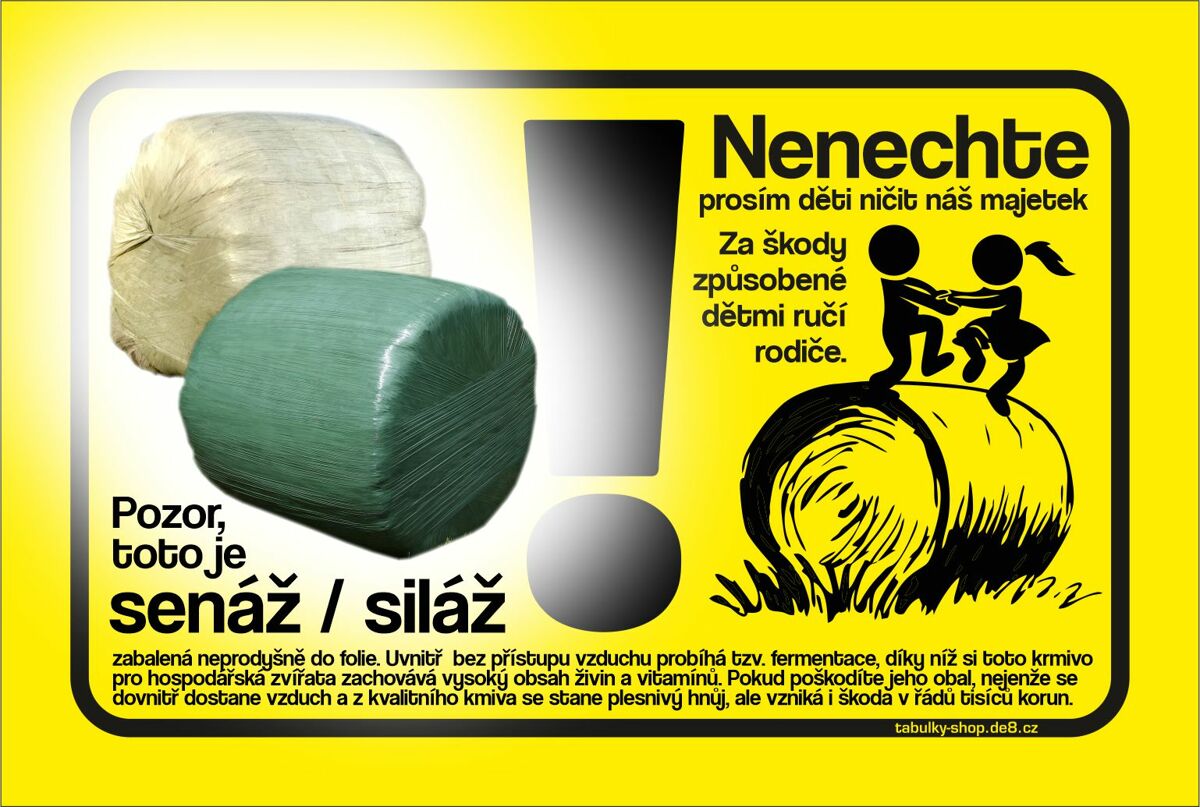 Touto tabulkou můžete dát jasně najevo zákaz jakéhokoliv ničení vašich balíků se siláží/senáží na loukách.