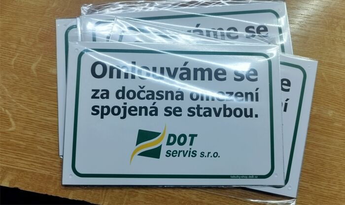 Vyrobíme Vám tabulku s jakýmkoli textem či grafikou, stačí jen objednat tabulku a na náš e-mai (shop@de8.cz)